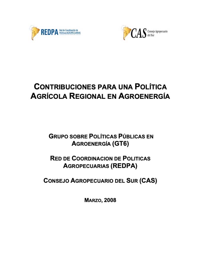 Contribuciones para una Política Agrícola Regional en Agroenergía